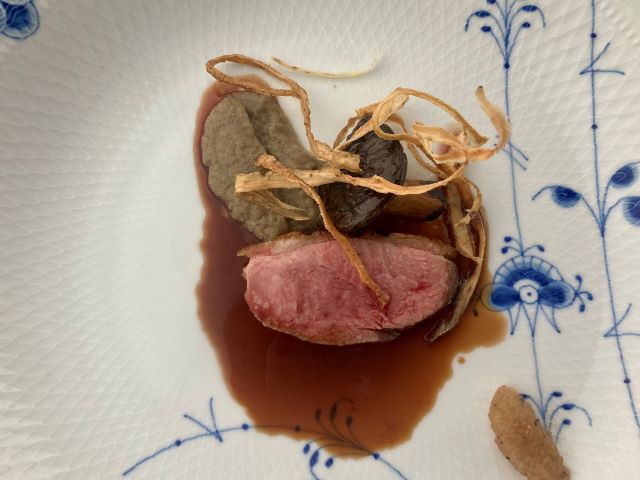 そして牛蒡のピュレと赤ワインソースで合わせ、