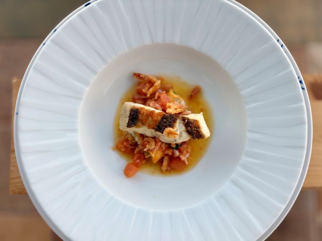 香ばしく焼き上げた天然真鯛に合わせるのは、